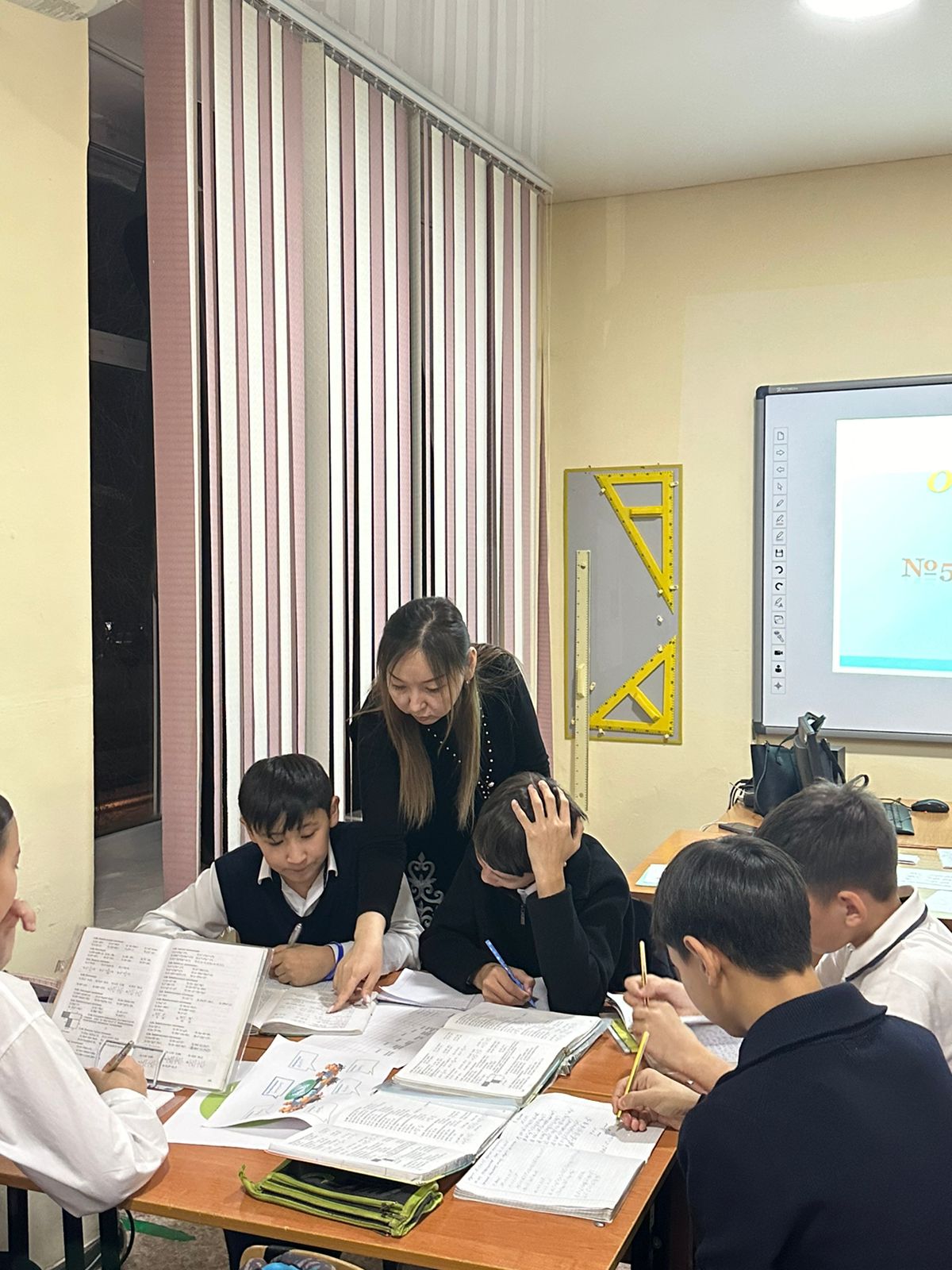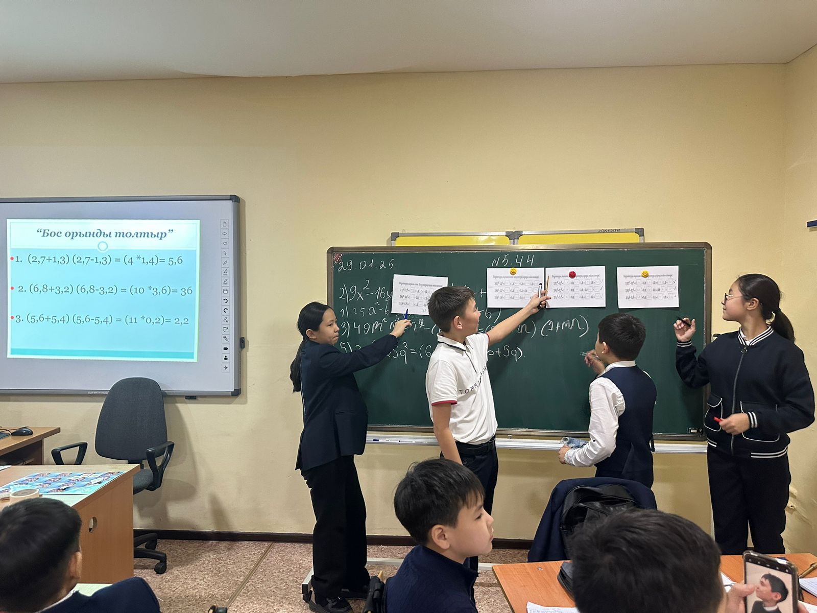 29.01.2025 ж 7”Б” сыныбында “Ойын элементтері арқылы оқыту трендінің жалпы білім сапасына әсері”командалық жұмыс жоспарын жүзеге асыру мақсатында алгебра пәнінен «Екі өрнектің квадраттарының айырмасы» тақырыбында ашық сабақ өткізілді.“Фигуралар” әдісі арқылы 4 командаға бөлініп, оқушылар өз рөлдерін бөлісіп, тапсырмаларды орындады.Оқушылардың қызығушылығын арттыру үшін “Кім жылдам?”